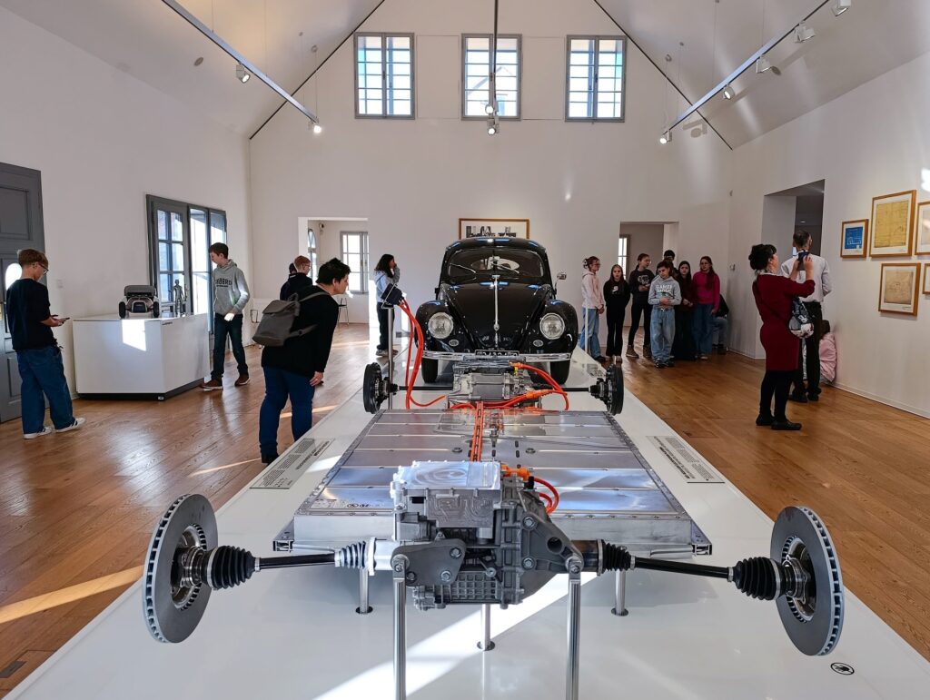 Als Teil der Exkursion besuchten wir das Ferdinand-Porsche-Museum in Maffersdorf (Vratislavice nad Nisou), wo die Kinder etwas über die Technikgeschichte der Region erfuhren, und anschließend eine Führung durch die InterBridge-Ausstellung in der Galerie N in Gablonz an der Neiße. Hier konnten tschechische und deutsche Kinder ihre eigenen Werke sowie die von Studierenden des Fachbereichs Design der Technischen Universität Reichenberg in den Ausstellungsräumen bewundern – von Perlenarbeiten bis hin zu Bekleidungsexperimenten mit 3D-Druck.