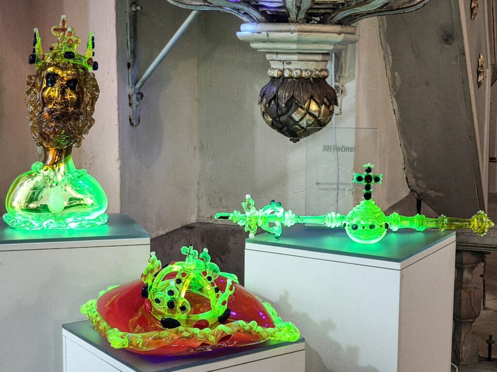 Auf dem Weg nach Reichenberg besuchten die Kinder aus Zittau die Kristallkirche in Kunratitz bei Zwickau (Kunratice u Cvikova). Dort schaffen Glaselemente und Licht eine außergewöhnliche Verbindung zwischen spirituellem Raum und moderner Materie. Die Glasmanufaktur Pačinek schmückte die Kirche mit wunderschönen Glasobjekten. Besonders fasziniert waren die Kinder von den Nachbildungen der tschechischen Kronjuwelen aus Uranglas, die unter UV-Licht grün leuchten. Auch die Glasmonstranz mit einem versiegelten Knochen der Heiligen Zdislava begeisterte die Kinder.